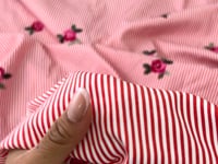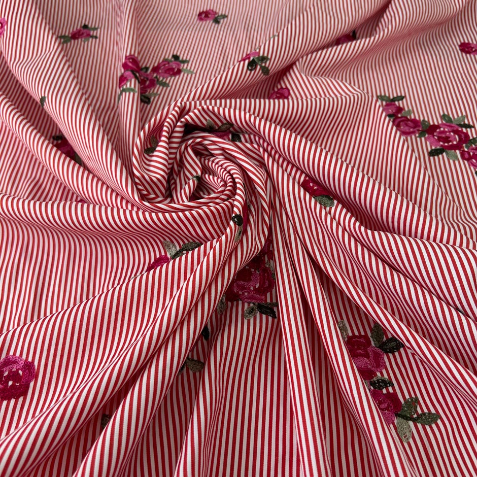 Striped Cotton And Polyester Yarn Dyed Popeline With Embroidered Flowers