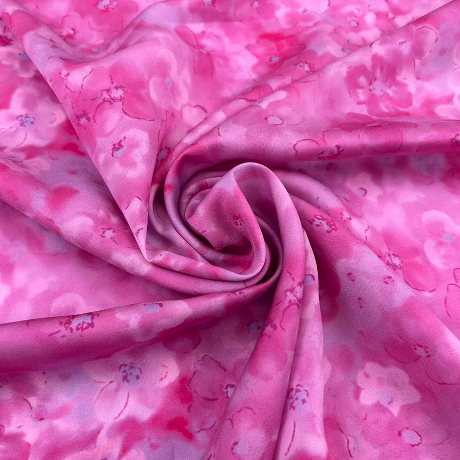 Polyester Satin With A Pink Floral Print