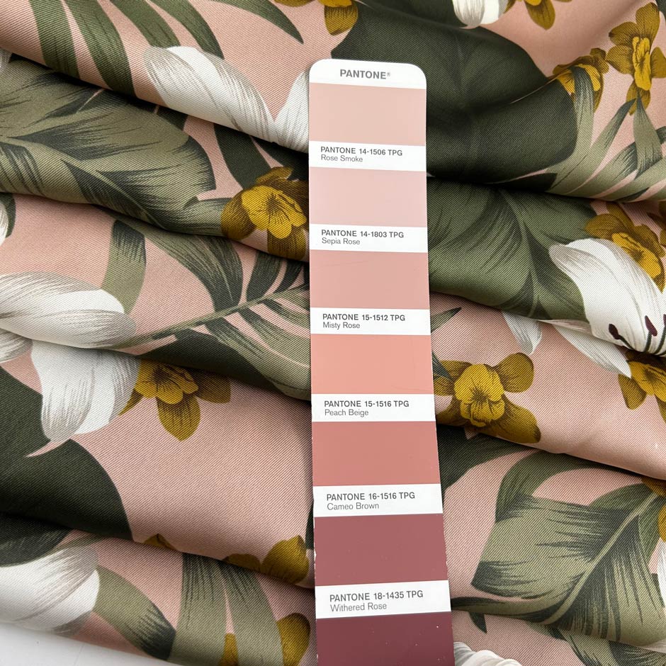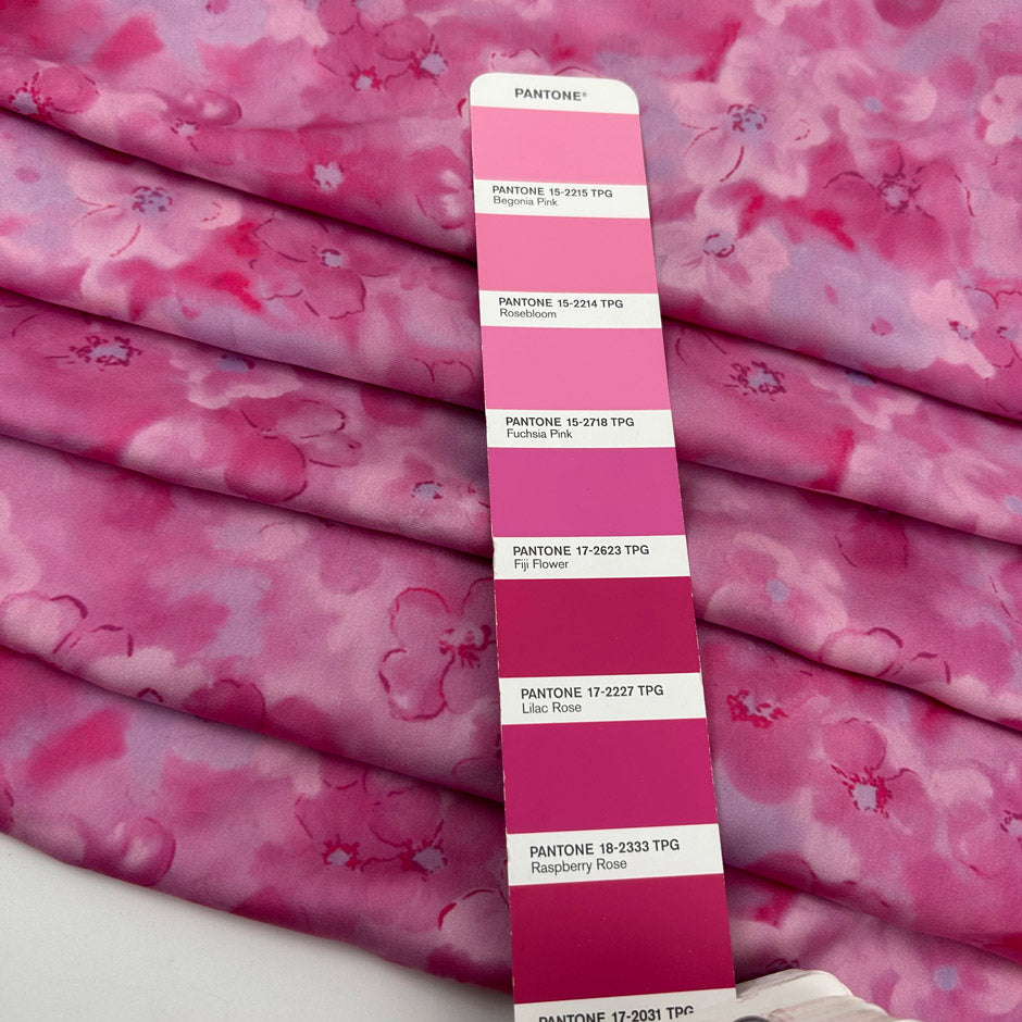 Pink Polyester Twill With A Floral Print